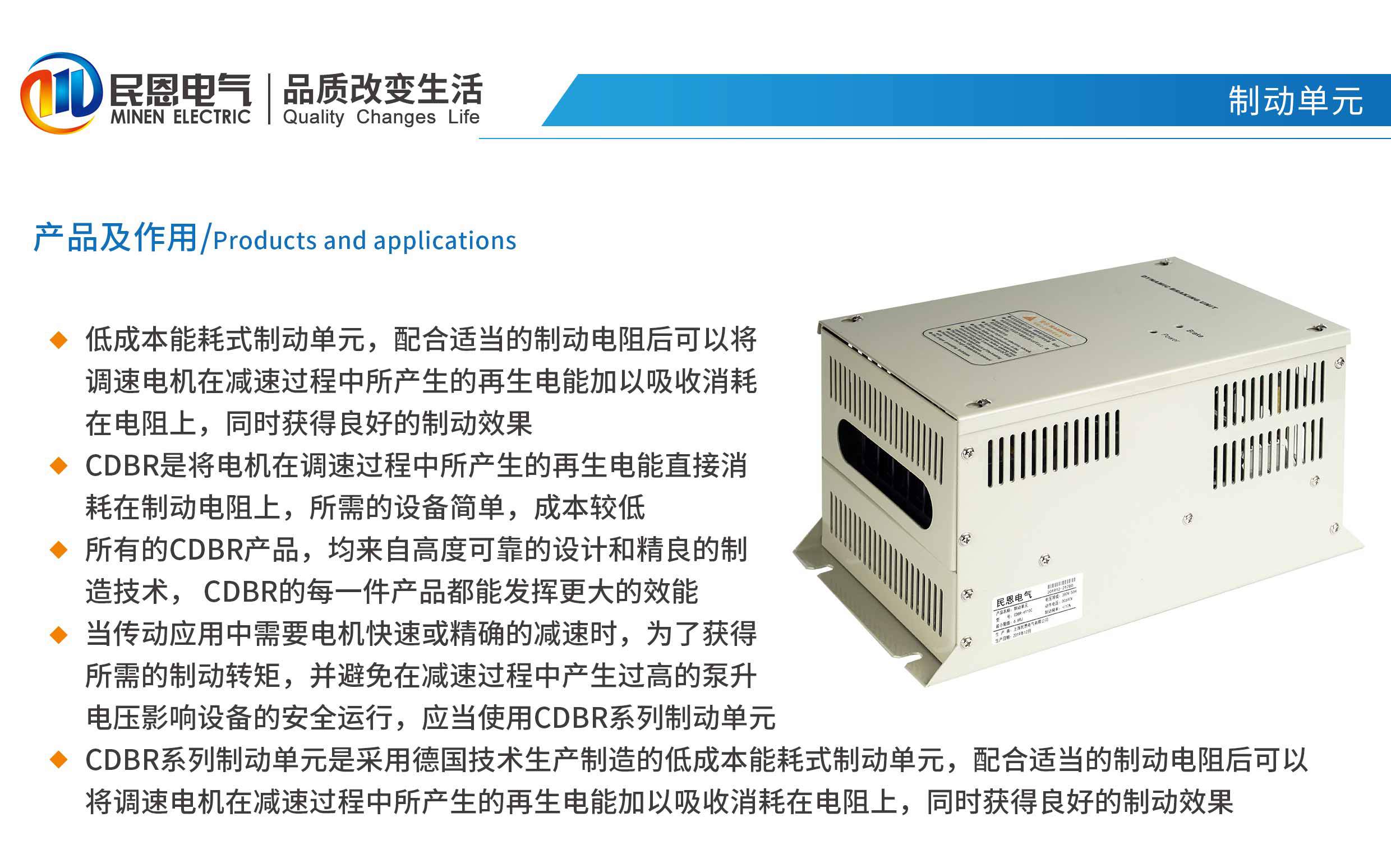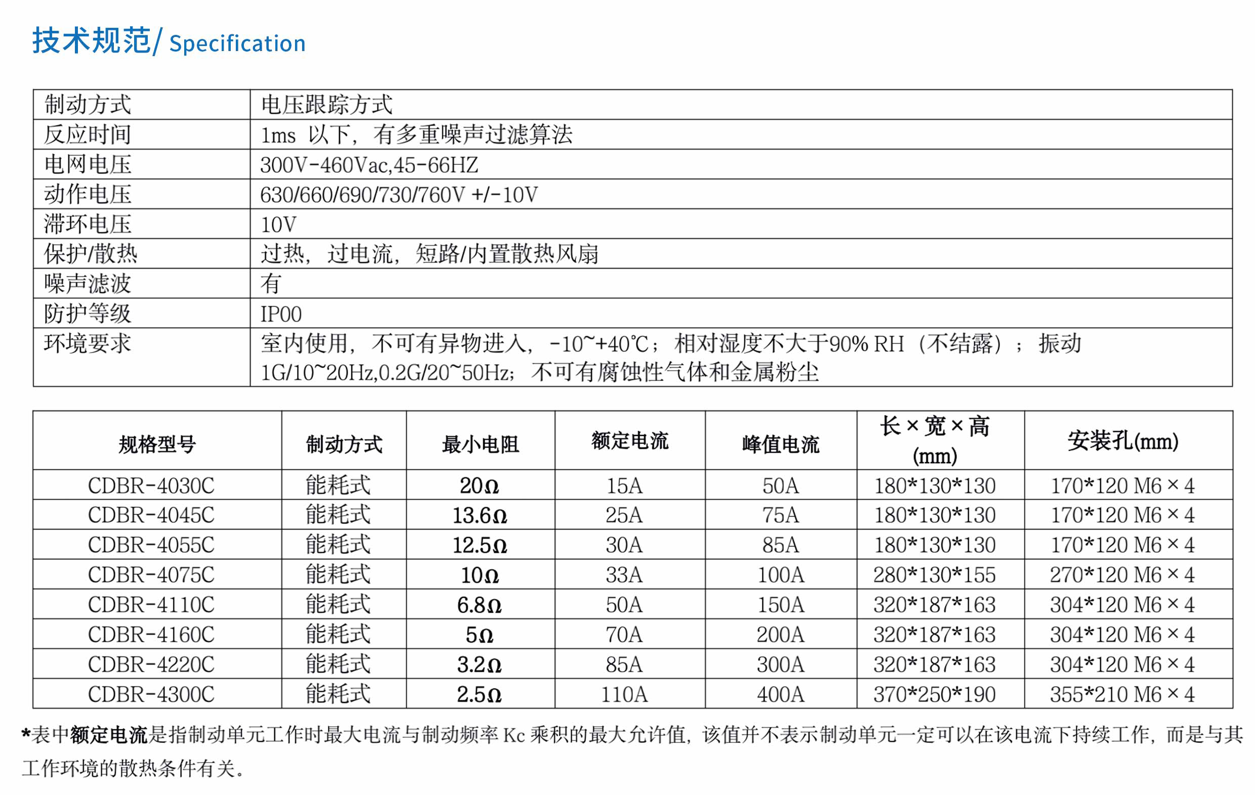 低成本能耗式制動單元,配合適當?shù)闹苿与娮韬罂梢詫⒄{(diào)速電機在減速過程中所產(chǎn)生的再生電能加以吸收消耗在電阻上,同時獲得良好的制動效果。 CDBR是將電機在調(diào)速過程中所產(chǎn)生的再生電能直接消耗在制動電阻上,所需的設備簡單,成本較低。 所有的CDBR產(chǎn)品,均來自高度可靠的設計和精良的制造技術, CDBR的每一件產(chǎn)品都能發(fā)揮更大的效能。