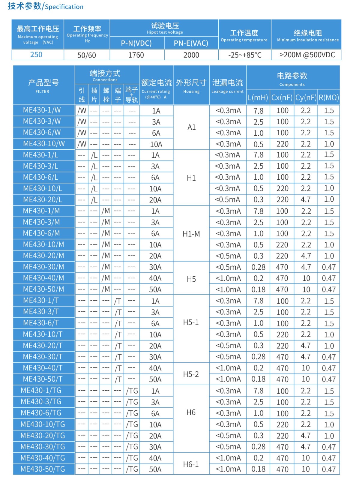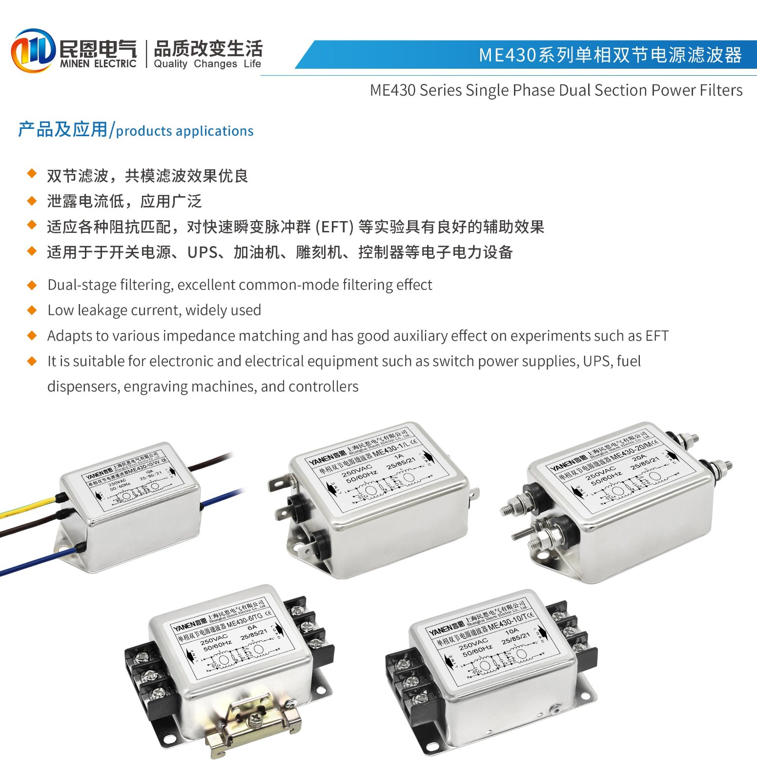 ME430系列單相雙節(jié)電源濾波器