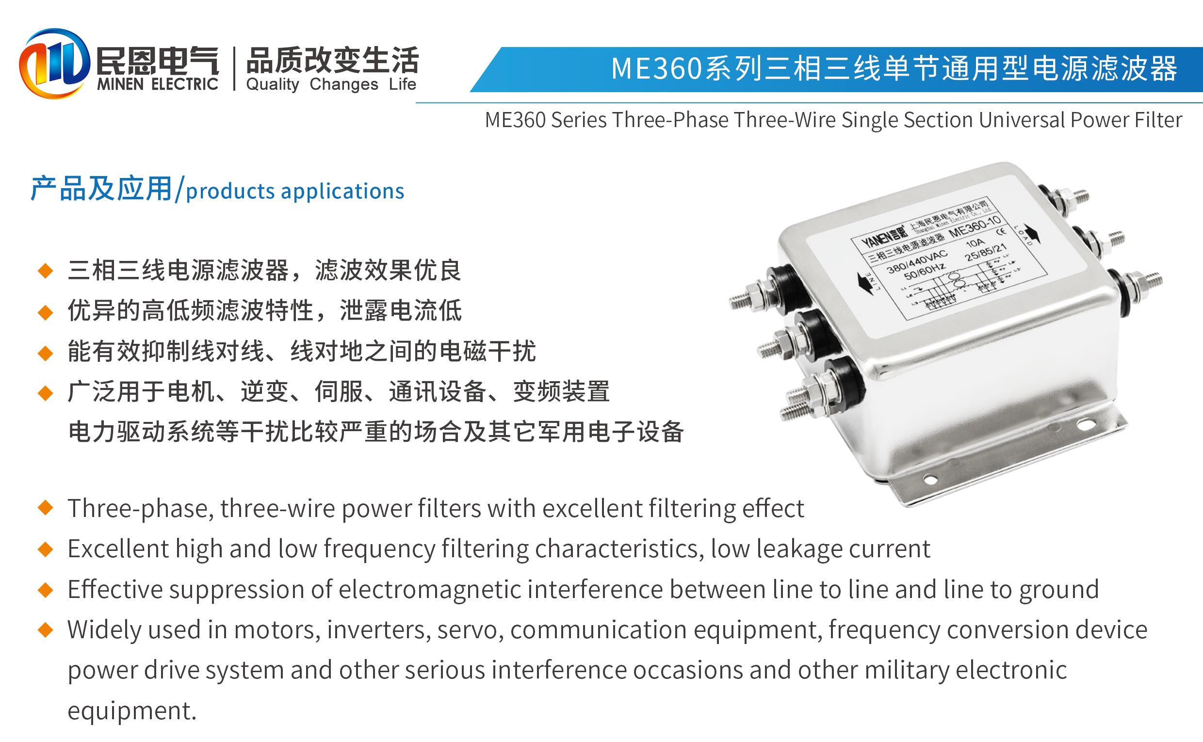 變頻專用濾波器 伺服專用濾波器 正弦波濾波器 無源諧波濾波器 APF有源濾波器 DV/DT濾波器 三相三線濾波器 三線四線濾波器 單相電源濾波器 直流電源濾波器 IEC插座濾波器 光伏逆變器專用濾波器 醫(yī)療專用電源濾波器