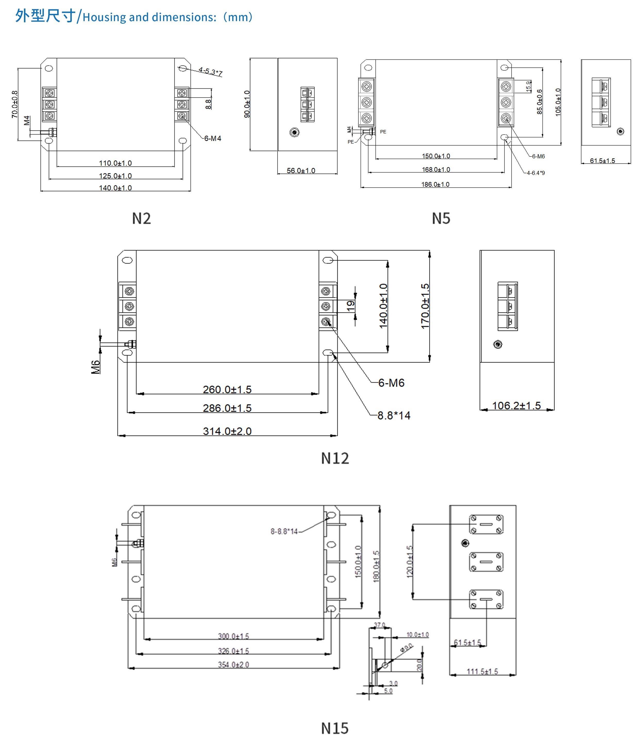 三相三線共模增強型雙節電源濾波器,雙節濾波,良好的共模、差模干擾抑制能力。