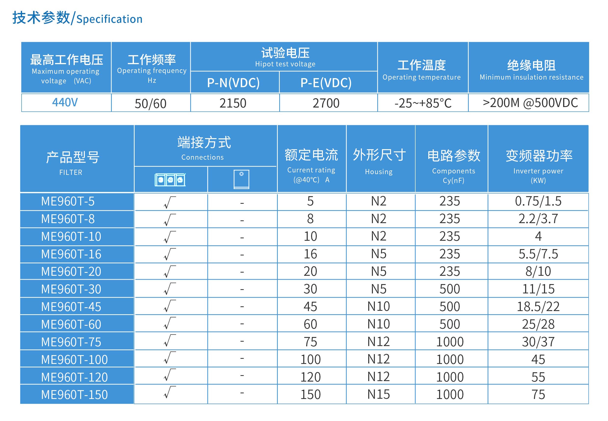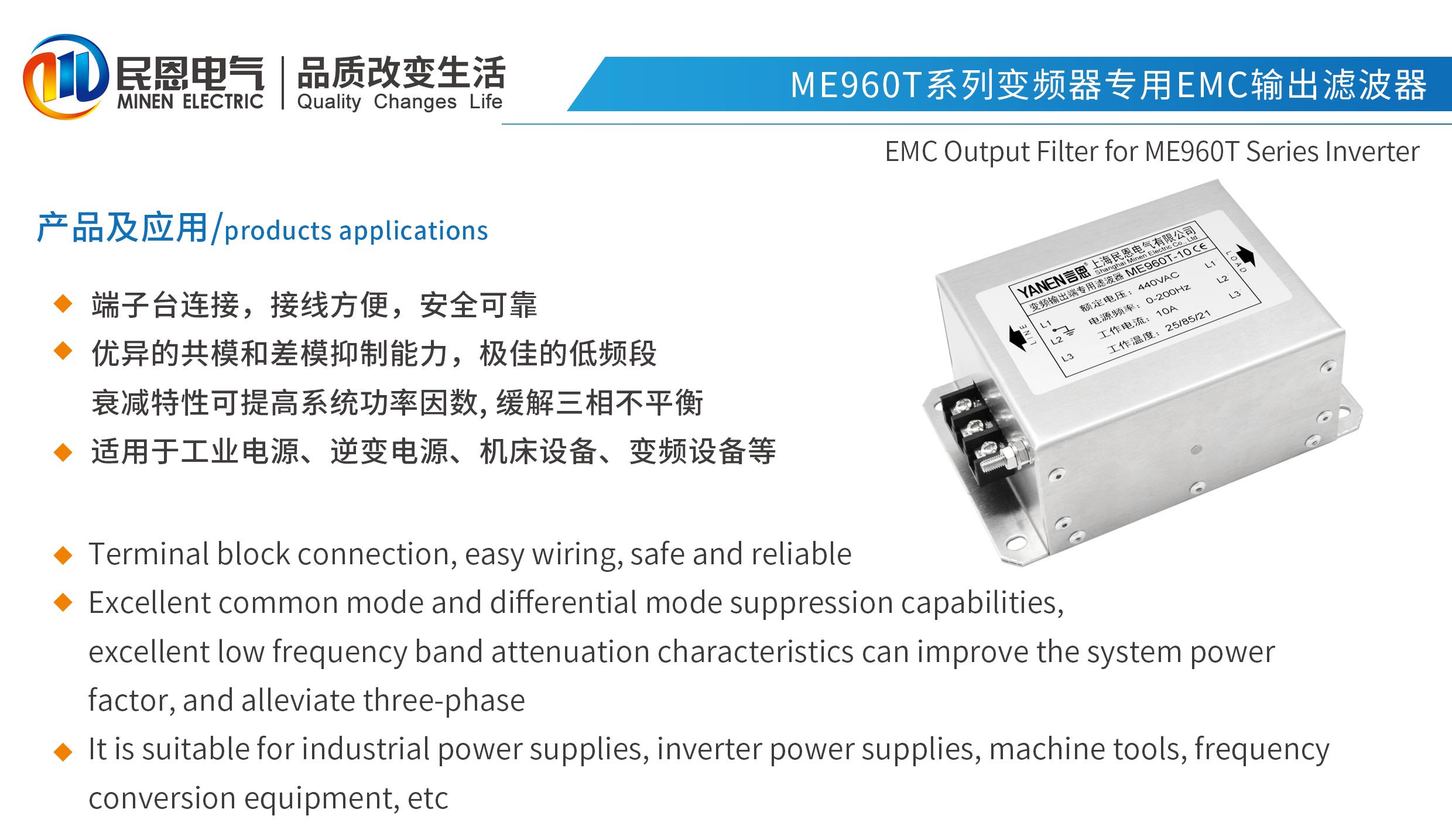 ME960T系列變頻器專用輸出EMC濾波器